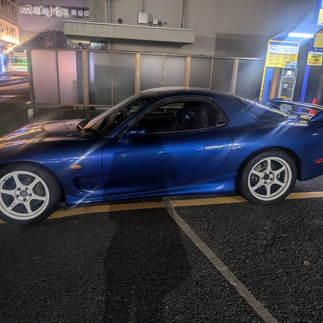 イニシャルD世代に人気のマツダ RX-7(FD3S)――。大切にされている愛車は、劇中で高橋啓介が乗っていたイエローFD3Sではないものの、深みのある鮮やかなブルーが印象的な、非常に美しい1台でした。